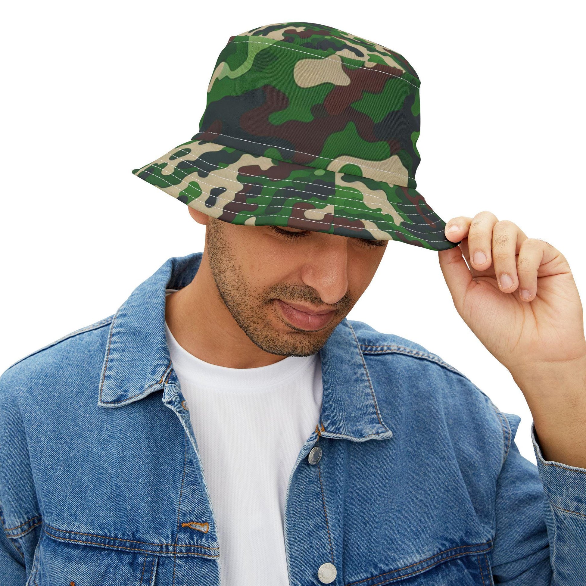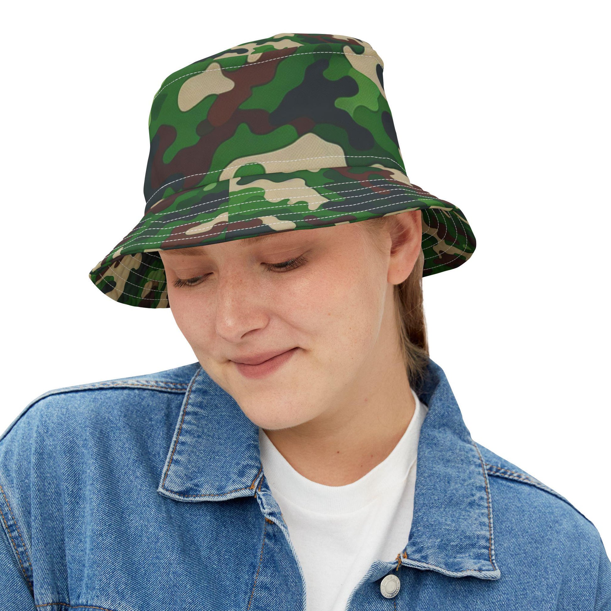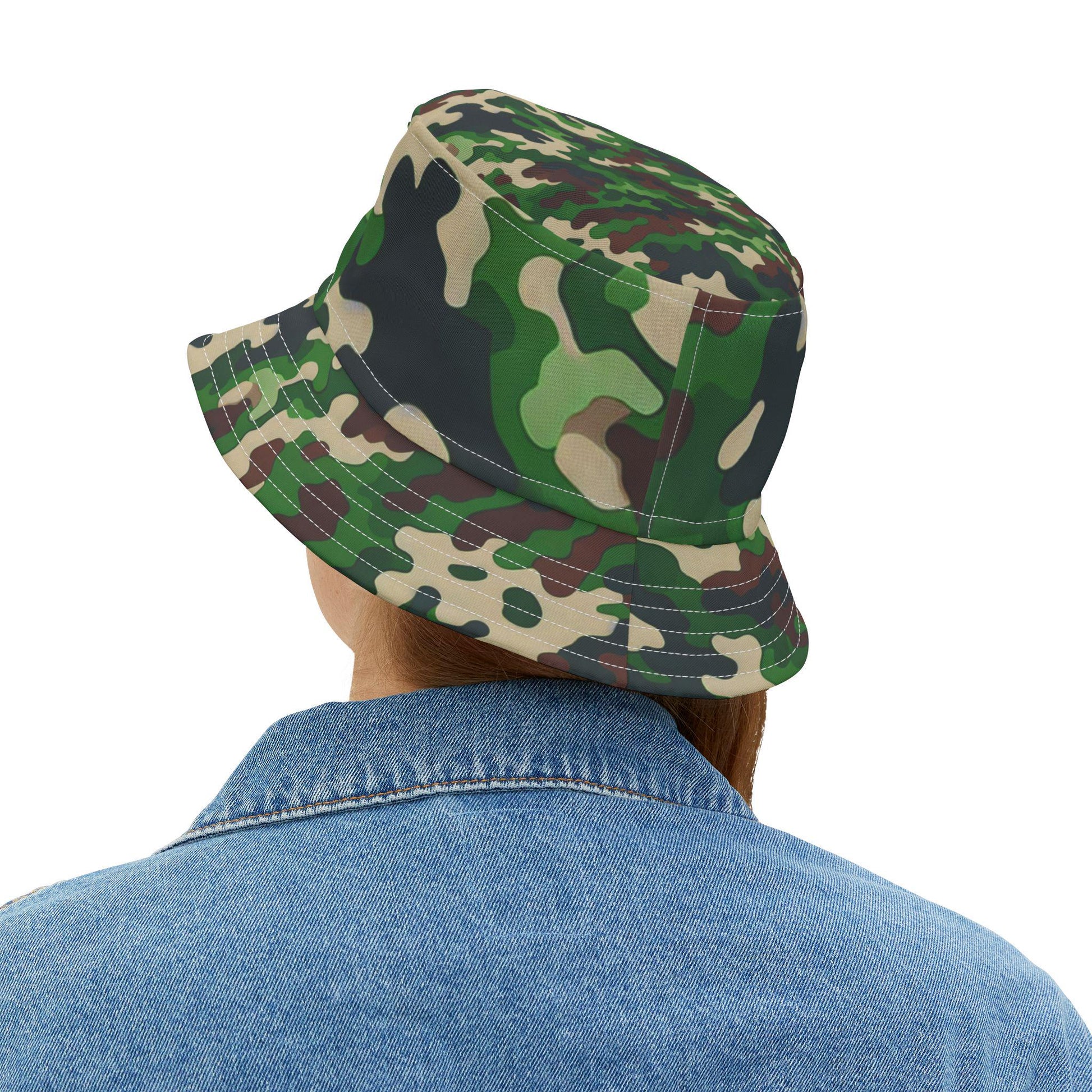 Vintage-inspired bucket hat perfect for outdoor activities like hunting. A nostalgic accessory that provides sun protection while adding a touch of style. Ideal for those who enjoy spending time in nature or attending music festivals.