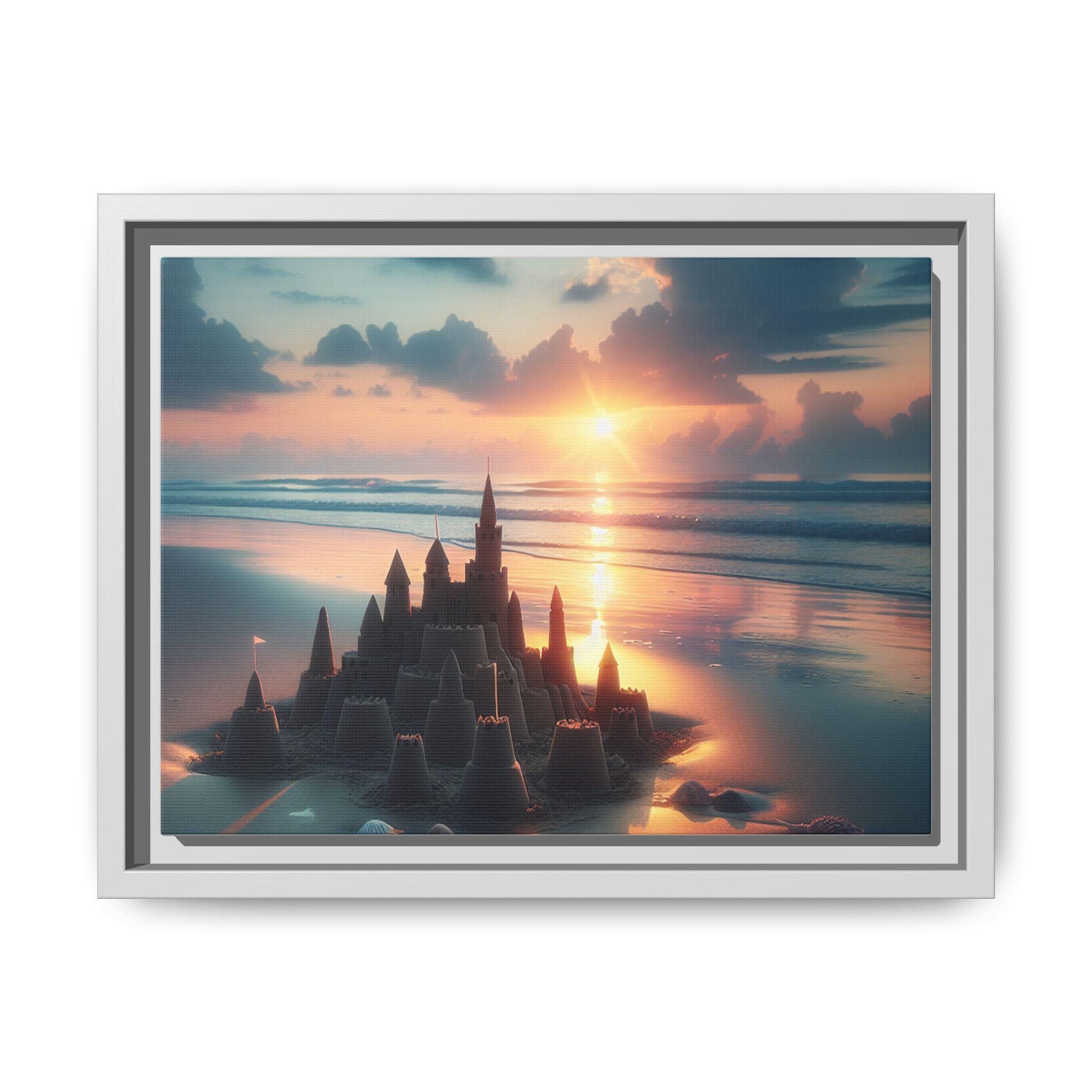 Capture the nostalgic feeling of building sand castles at the beach with dad at sunrise with this framed matte canvas print. Perfect for those who cherish memories and enjoy a peaceful, serene vibe. Ideal for beach lovers, fathers, and anyone who appreciates quality art. Great for Father's Day, birthdays, and home decor.