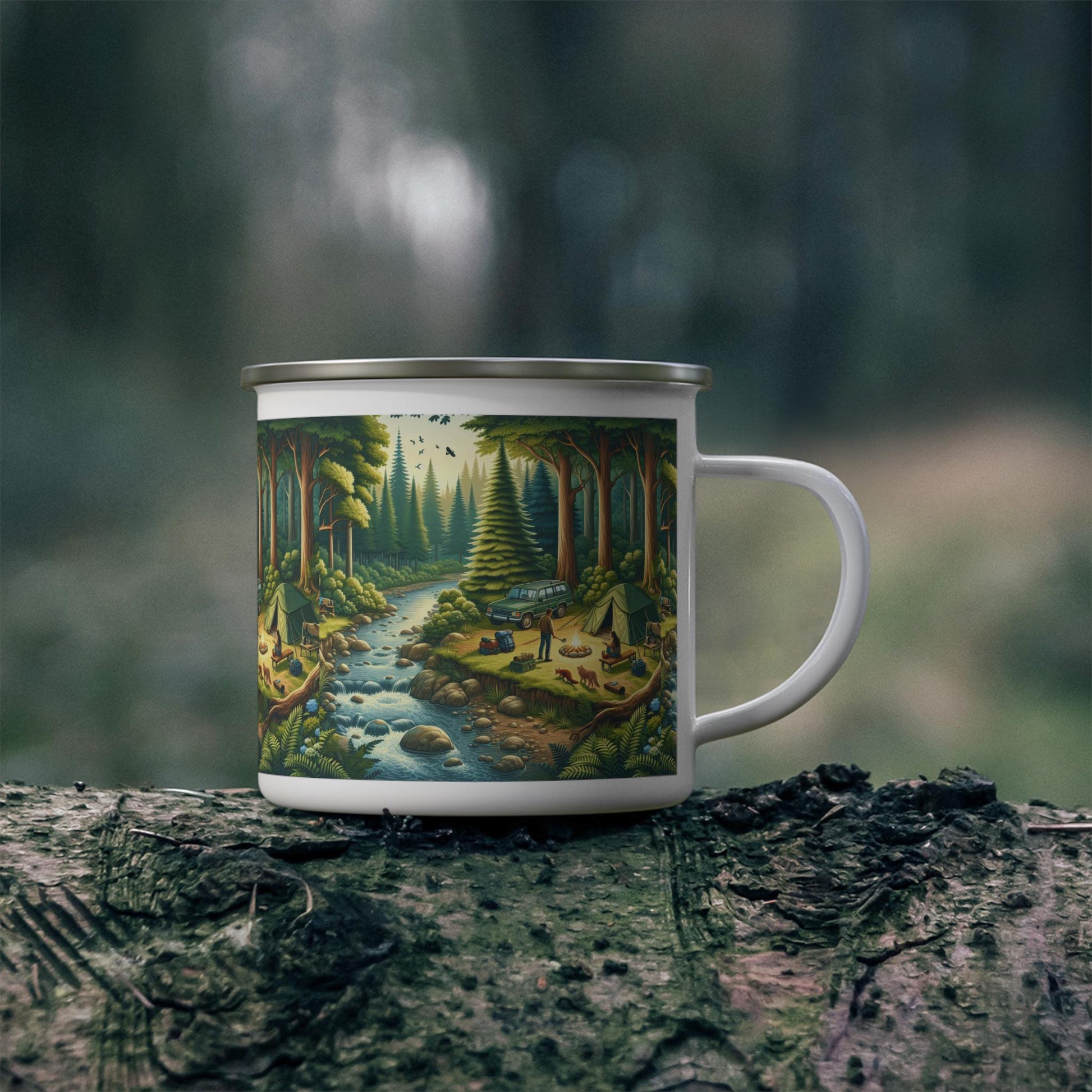 Enamel Camping Mug, Father's Day Gift, Coffee Mug for Dad, Campfire Mug, Outdoorsy Gift, Enamel Mug for Him