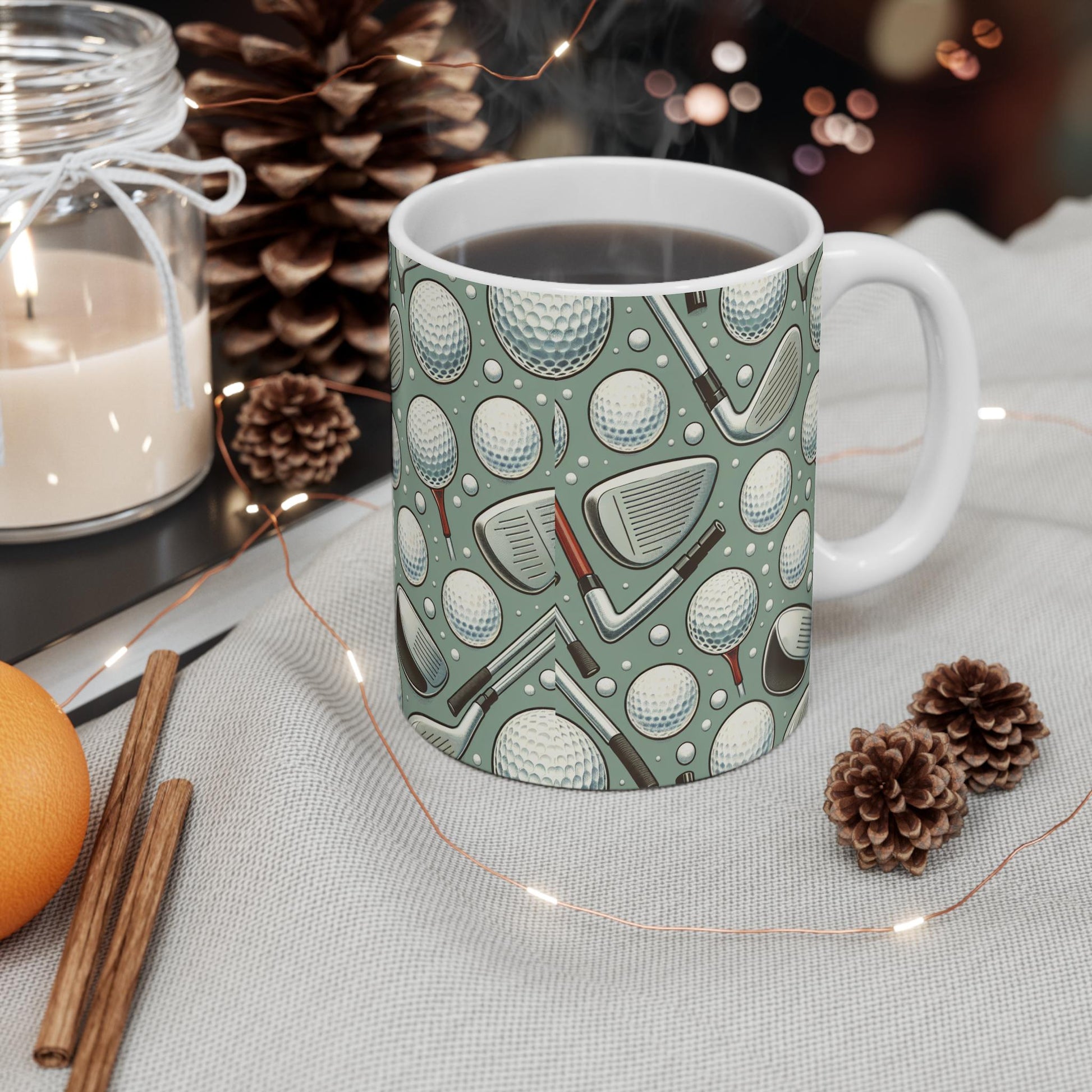 Elevate your morning routine with this delightful mug, perfect for golf enthusiasts! Featuring a fun pattern of golf clubs and balls, this mug brings a touch of whimsy to your coffee or tea time. The design radiates an energetic vibe that reflects your passion for the sport, making it a wonderful addition to your kitchenware. It's ideal for gifting during holidays like Father's Day, birthdays, or any celebration where you want to inspire and connect with fellow golfers. Enjoy your favorite beverages while reminiscing about your latest swing on the course!