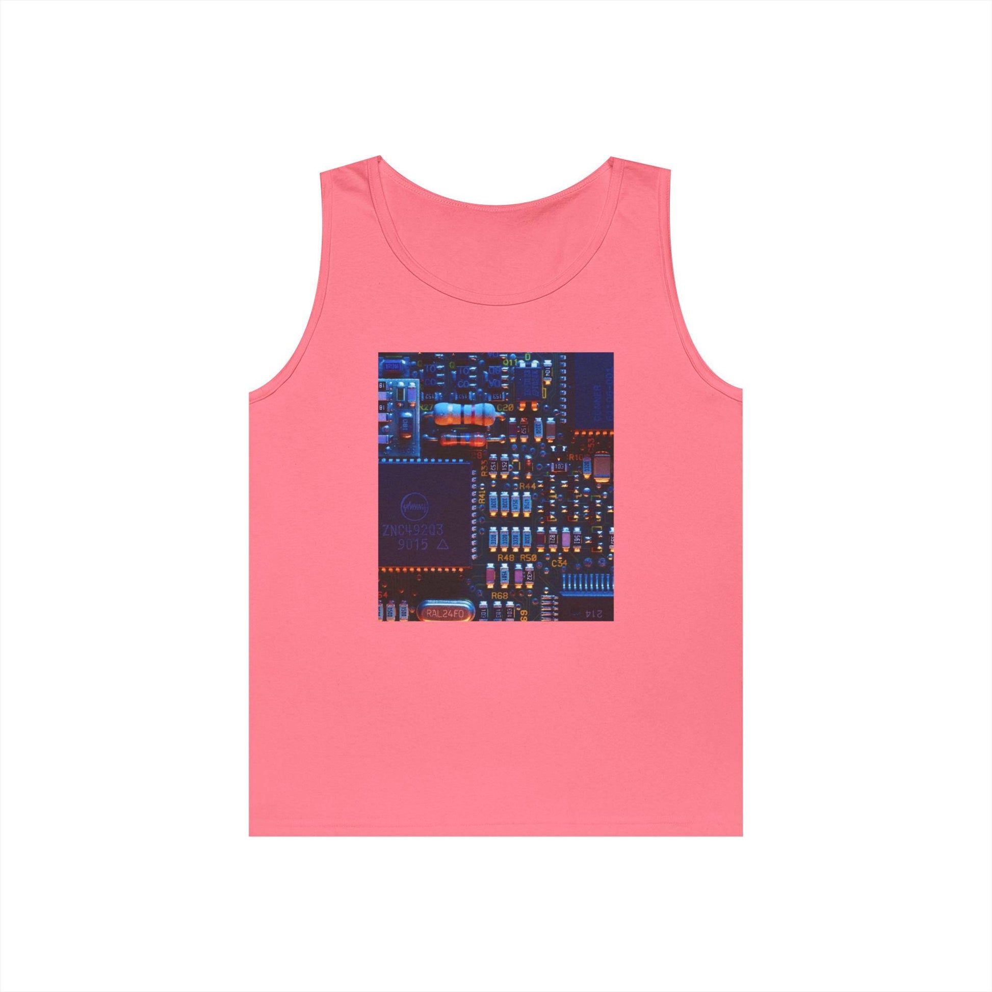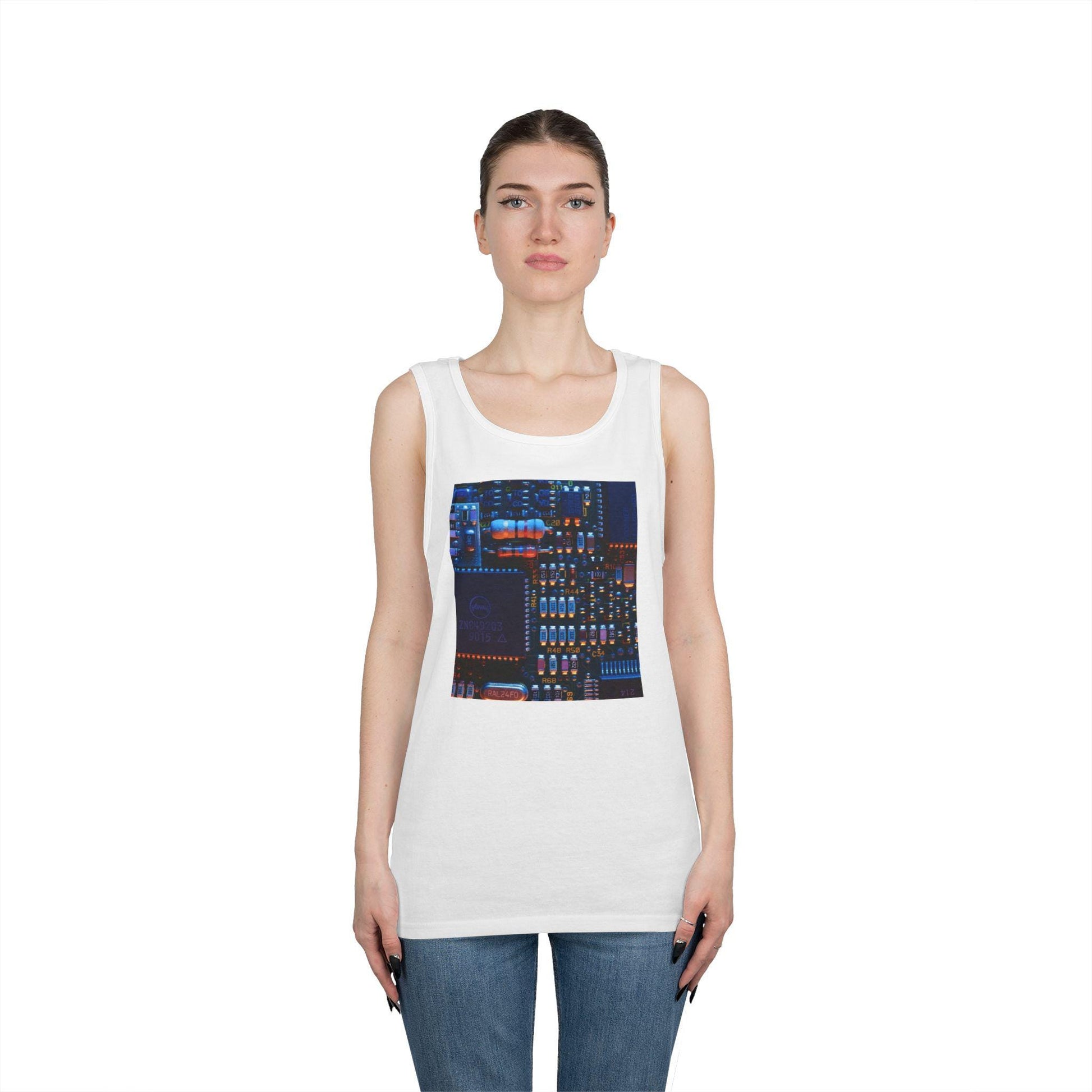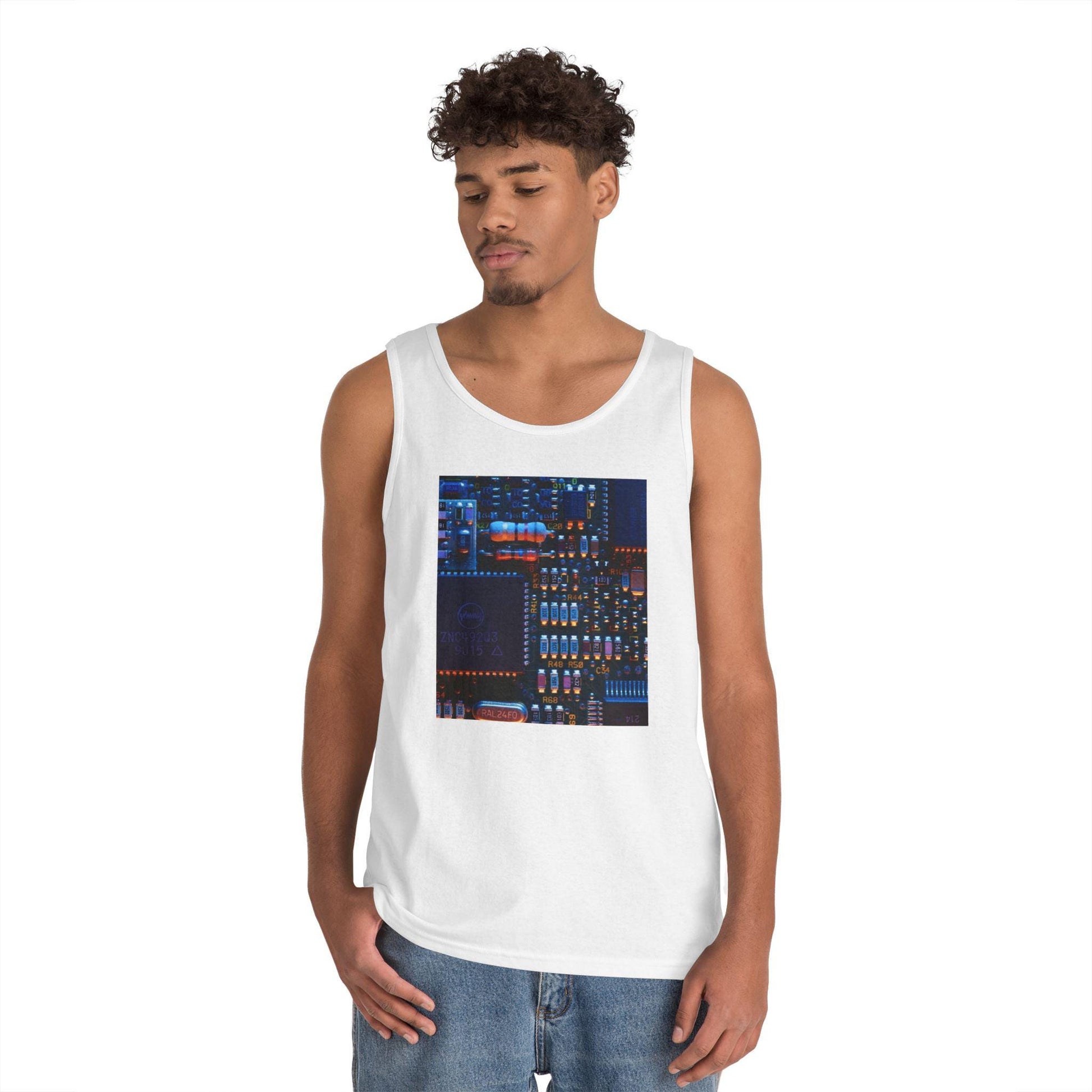 Tech-Inspired Unisex Heavy Cotton Tank Top, Perfect for Tech Lovers, Casual Wear, Summer Outings, Unique Gift for Geek Culture